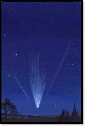 “The comet of 1861 was not the most spectacular of the nineteenth century (that probably being the comet of 1811) or the most beautiful, which was Donati’s of 1858, but its appearance was dramatic, and it interacted with the Earth in an almost unprecedented way. For a while the Earth was actually within the comet’s tail, and the inhabitants of this planet had a brief but giddy view of streams of cometary material converging towards the distant nucleus. By day also the Sun was dimmed as the Earth ploughed through the comet’s gas and dust.”